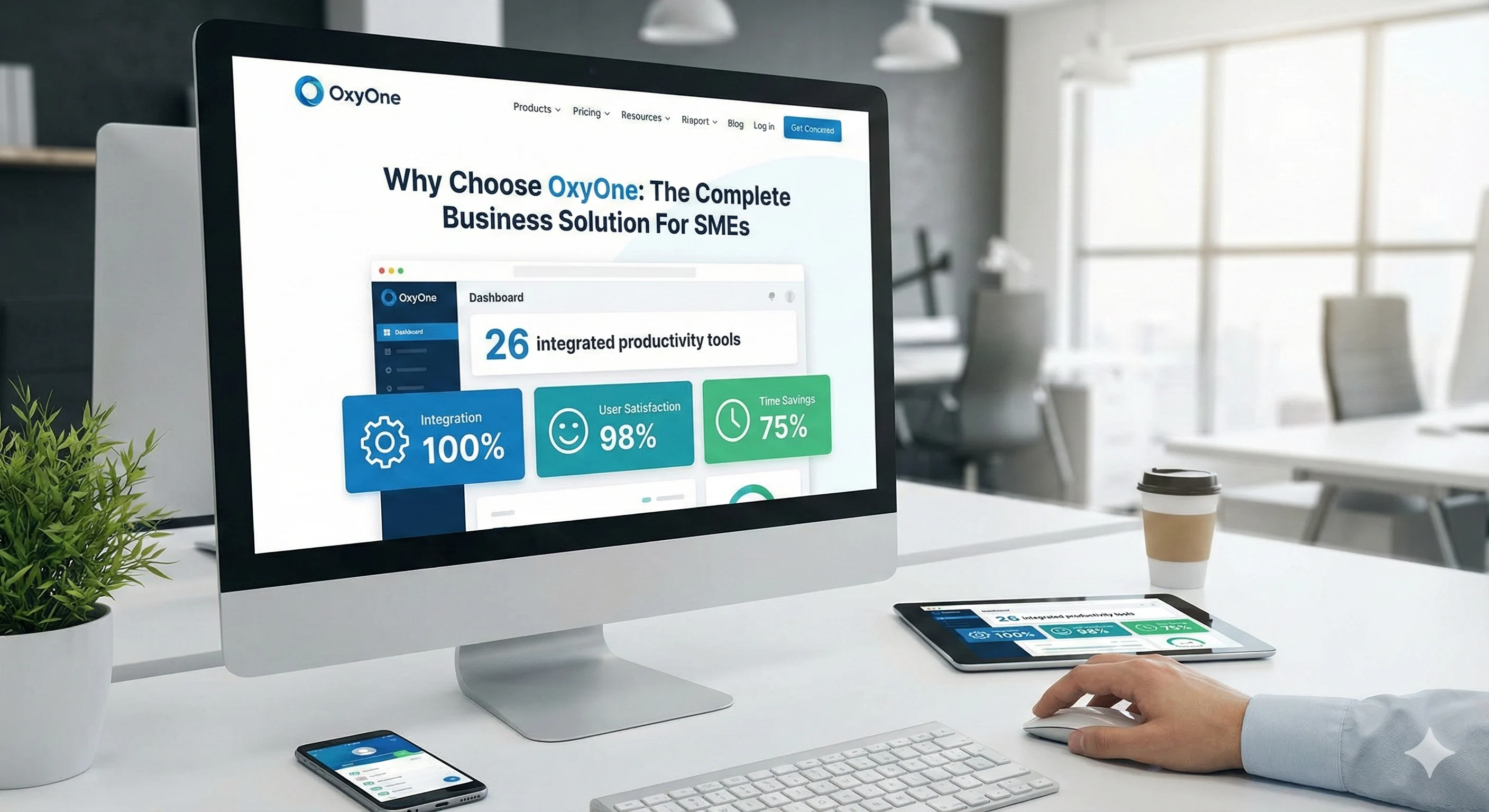 OxyOne provides a comprehensive ecosystem of 26 integrated productivity tools designed specifically for Small and Medium Enterprises. Our platform streamlines your operations, improves efficiency, and helps you grow your business.